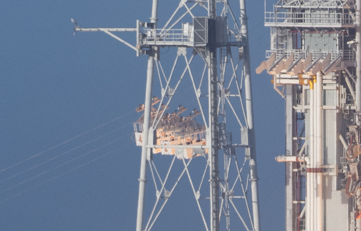 This is a set of baskets or cars, similar to what is used on some cable cars and ski resort lifts. In case of a catastrophic emergency during liftoff, the crew has a few seconds to board them and escape. These cars are about the size of an ordinary SUV vehicle and provide enough room for both the astronauts and other personell. The utilize a zipline-like system to travel down at high speed in order to quickly evacuate the zone of highest danger.